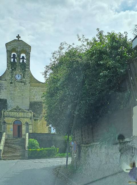 Angle rue de l’église et route de Camblanes-et-Meynac la végétation provenant du riverain deborde largement de 2 m environ sur la voie – et masque le panneau Stop !